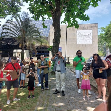 Após as palestras, nos jardins do Planetário, o público-alvo, crianças e adolescentes juntos de seus responsáveis, puderam participar de uma atividade de observação de aves com uma prática lúdica de pintura e desenho das espécies de aves observadas por eles.