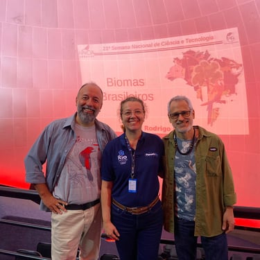 A convite da Astrônoma Flávia Lima, do Planetário da Gávea, em função da 21ª Semana Nacional de Ciência e Tecnologia, os Professores Ricardo Santori (UERJ) e Rodrigo Guerra (Instituto Ambiental Goianá) ministraram palestras sobre os nomes de animais dados às constelações pelos povos originários e sobre os biomas brasileiros, respectivamente.